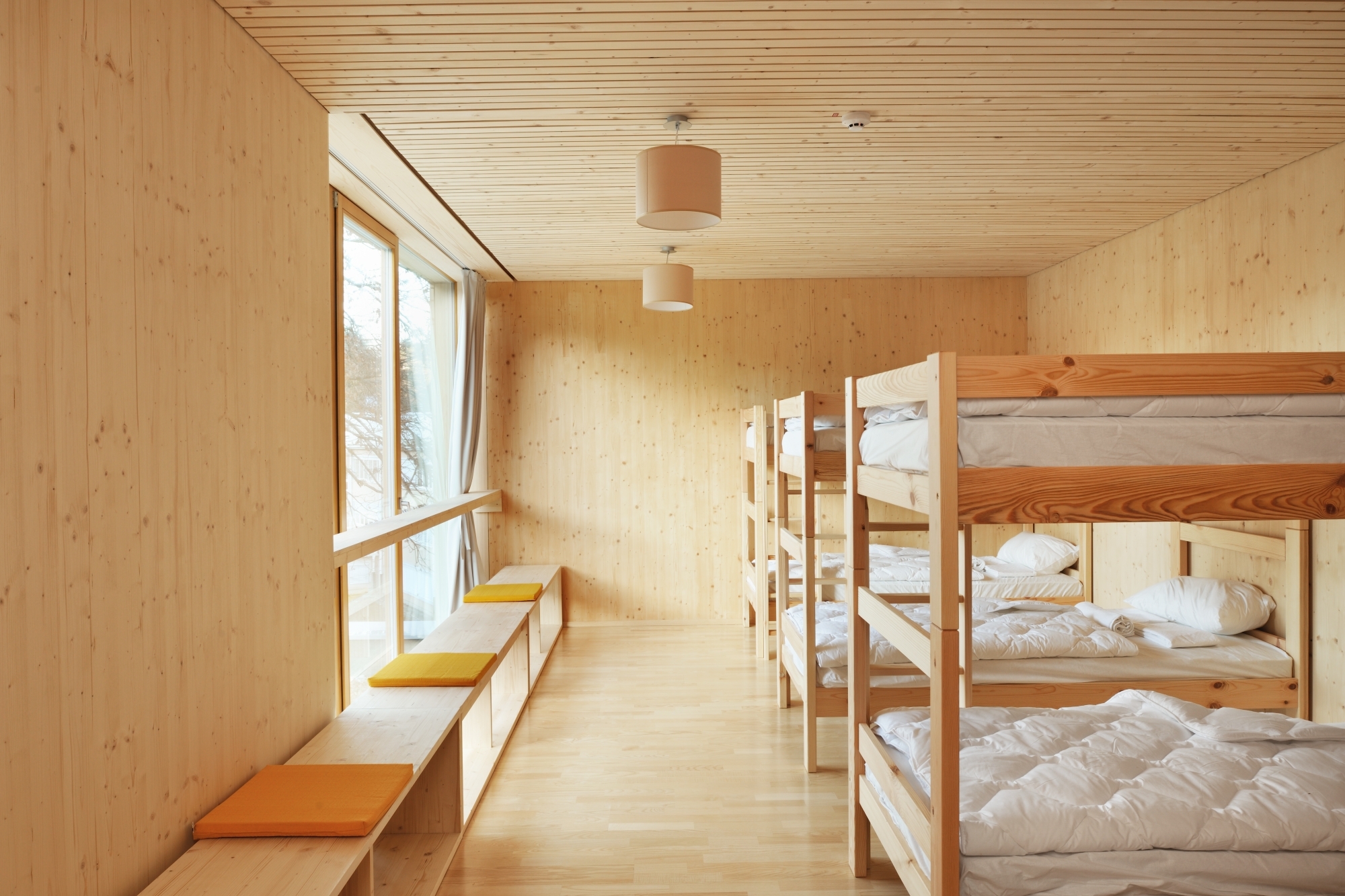Energie: Das Gebäude war mit einem Primärenergiebedarf von 22 kWh/m²a und damit im Passivhausstandard geplant. Nach dem aktuellen Monitoring hat das Jugendhotel allerdings einen höheren Heizwärmebedarf. Dennoch ergeben geringe Energiekosten und die wohnliche Raumatmosphäre ein beispielhaftes öffentliches Gebäude.