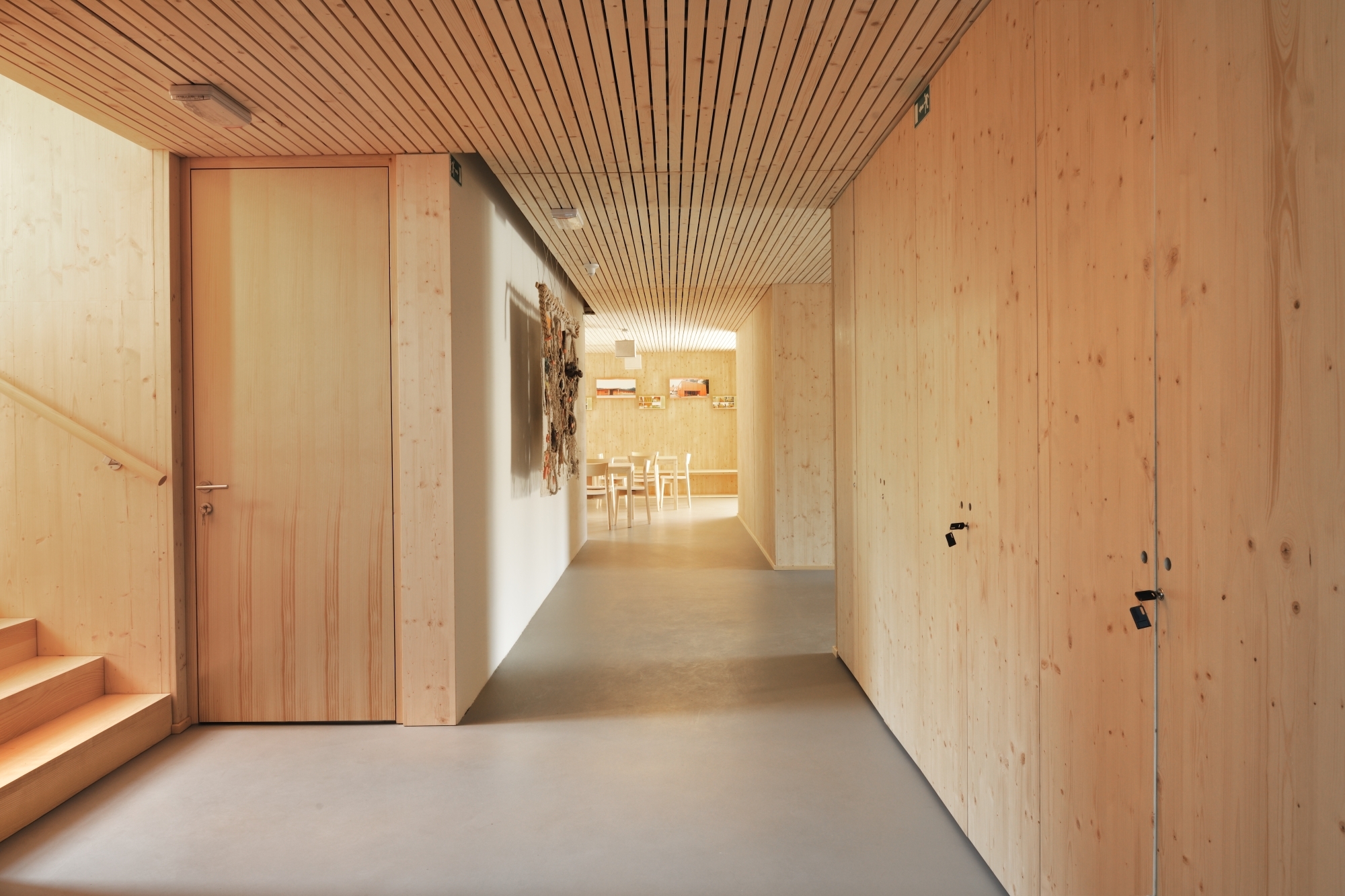 Holz: Das für den Bau verwendete Holz stammt aus dem nachhaltig bewirtschafteten nahegelegenen Pohorje-Wald. Die Region ist für ihre jahrhundertealte Tradition des Fichtenholzbaus bekannt. Das Jugendhotel greift die regionale Baukultur auf und interpretiert diese mit der Verwendung von Brettsperrholz aus Fichte neu. Das Holz kommt als tragendes Element (in der Tafelbauweise) sowie bei der Fassadengestaltung zum Einsatz.