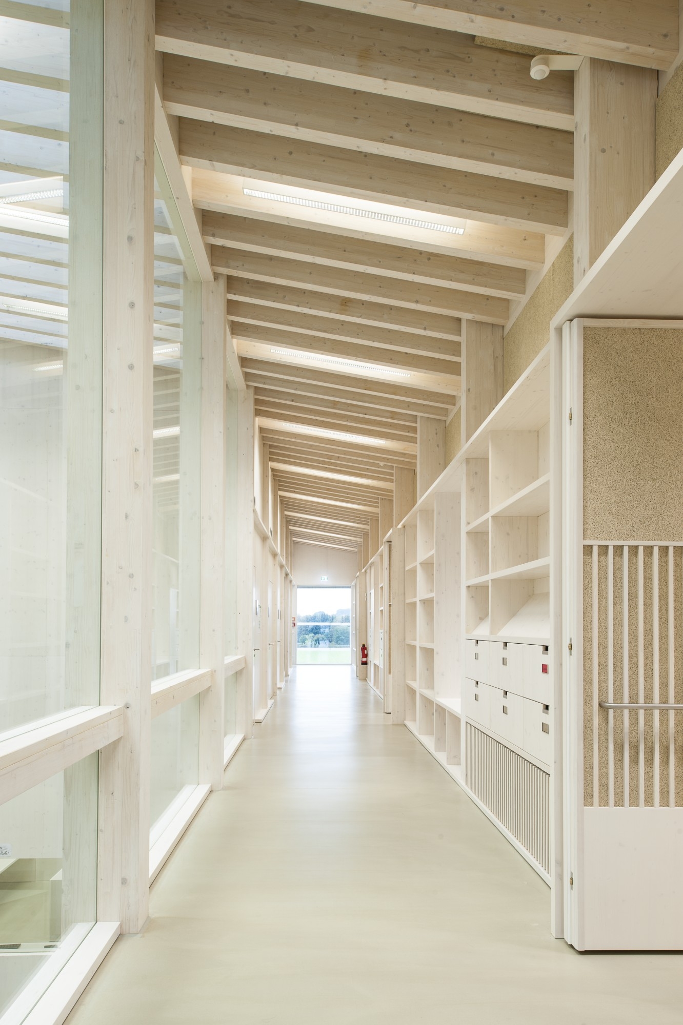 Klassenhäuser und Aula: Kaufmann Bausysteme GmbH, Reuthe (AT); Sporthalle: ZÜBLIN Timber GmbH, Aichach (DE)