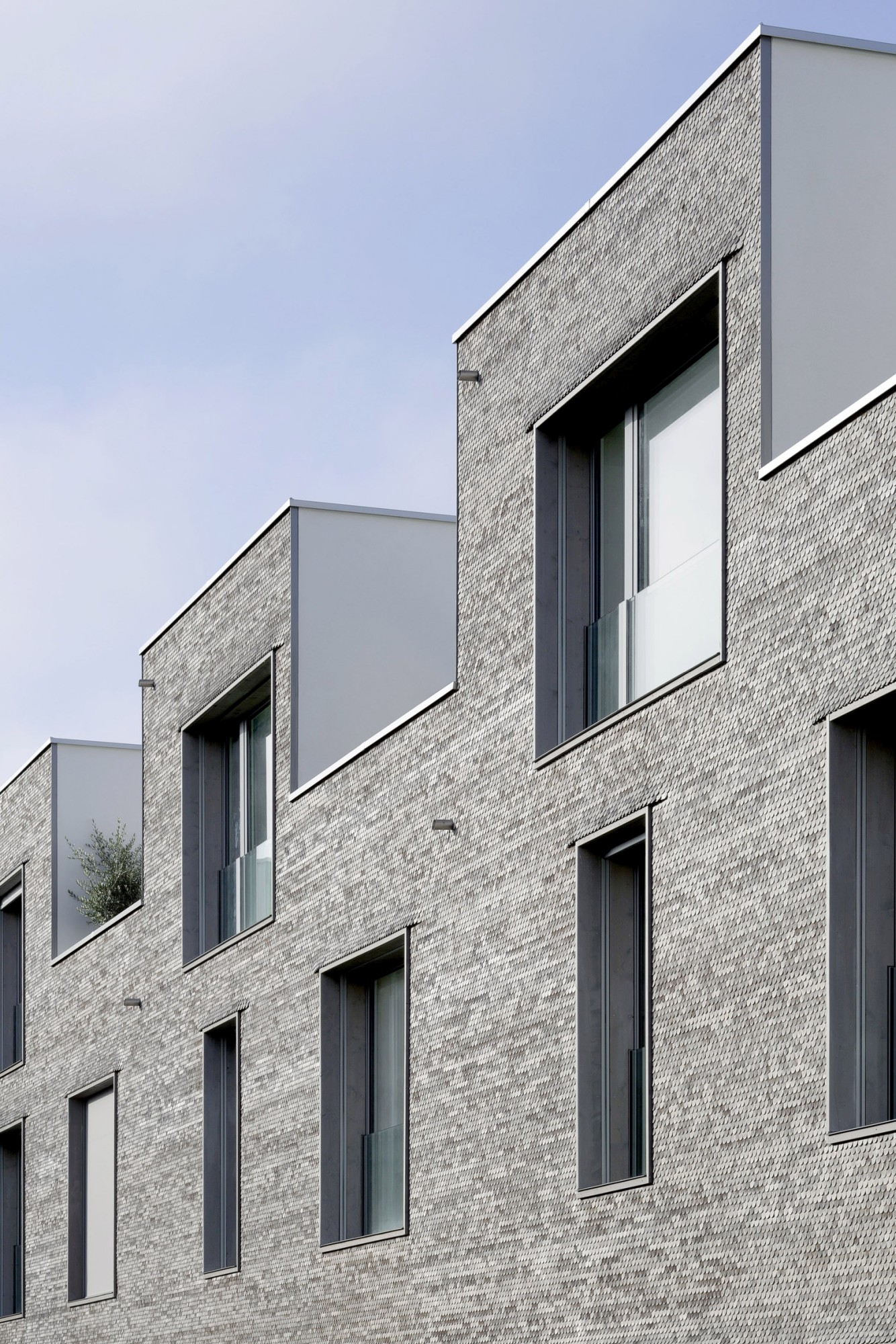 Entwurf: Die Wohnsiedlung liegt im Hirzbrunnenquartier in Zentrumsnähe. Sie besteht aus 43 Reihenhäusern und zwei Mehrfamilienhäusern mit 22 Eigentumswohnungen. Die Anordnung der Bauvolumen erlaubt trotz verdichteter Bauweise größtmögliche Privatheit – Gärten, große Dachterrassen und Loggien bilden private Außenräume. Die loftartigen Grundrisse der Mehrfamilienhäuser können frei unterteilt werden. Die Gebäude entlang des Gleisbogens sind sowohl zum Wohnen als auch zum Arbeiten nutzbar, die Reihenhauszeilen weisen unterschiedliche Typologien auf.