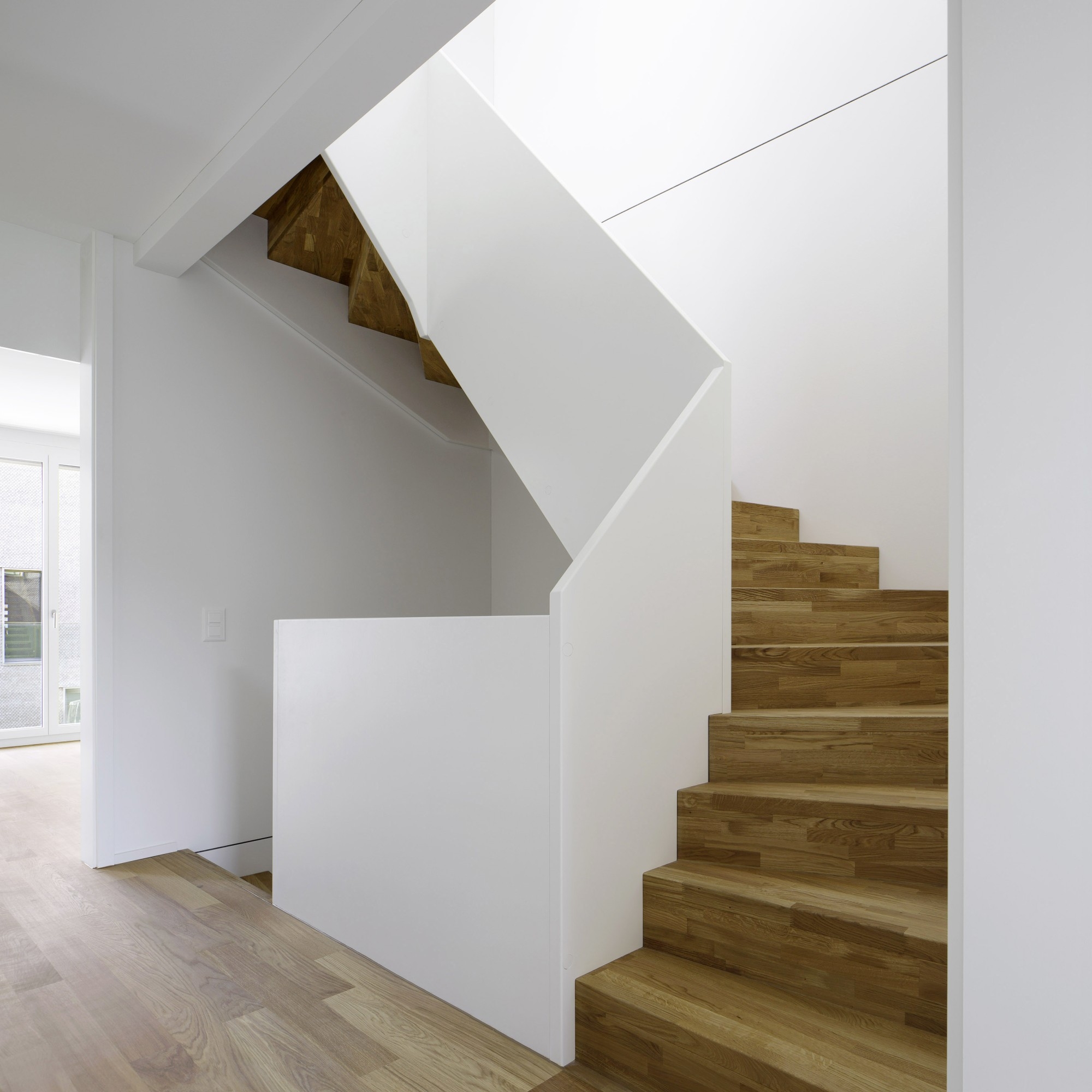 Holz: Auf einem massiven Untergeschoss sind die Gebäude in Holzsystem- bzw. Hybridbauweise errichtet. Beim Mehrfamilienhaus bestehen Tragwerk und Treppenhäuser aus Stahlbeton, die nichttragenden Außenwände sind aus vorgefertigten Holzrahmenelementen.
