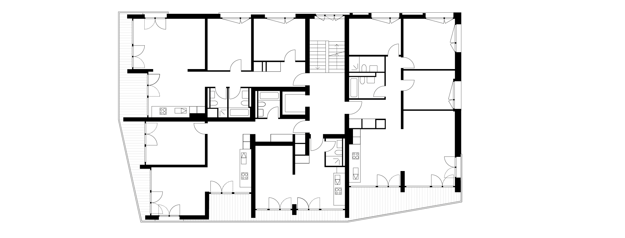 Funk + Partner AG, Urdorf (CH); Holzbau: Häuser 1-4: Pirmin Jung AG, Rain (CH); Häuser 5-9: Merz Kley Partner AG, Altenrhein (CH)