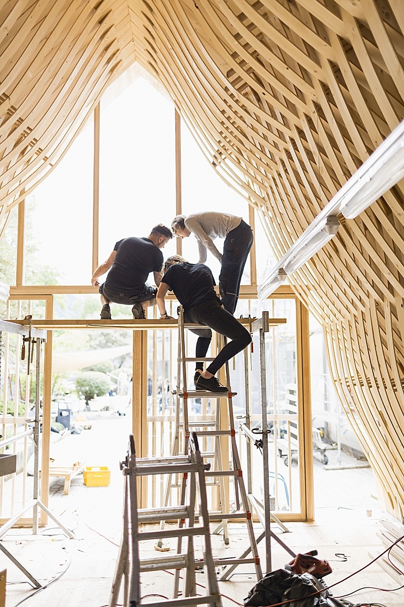 Une structure porteuse extraordinaire à base de planches de bois cintrées : conçue et construite par des étudiants, soutenus par des menuisiers locaux.