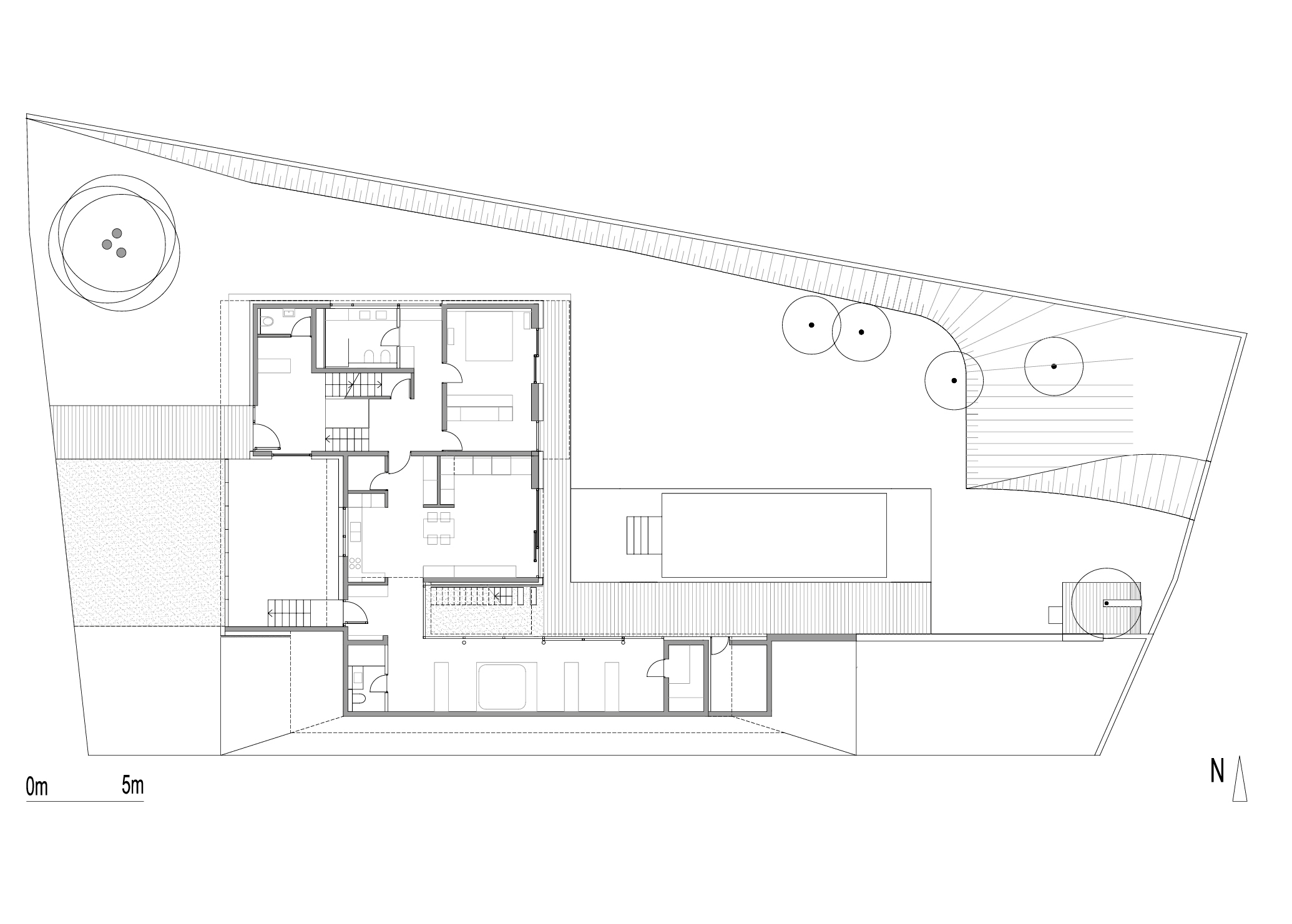 Projet : Ce qui ressemble de prime abord à une maison individuelle classique de style scandinave, s‘affiche ensuite comme un bâtiment adhérant judicieusement à son environnement. La maison de type duplex est partiellement couverte par une colline artificielle végétalisée, qui permet également un accès de plain-pied à l‘étage supérieur. Le sous-sol abrite la salle de bains et les chambres, tandis que de vastes fenêtres à l‘étage supérieur offrent une vue imprenable sur les montagnes environnantes. Un petit coin lecture est installé sur une plateforme en bois au-dessus de l‘espace de vie.
