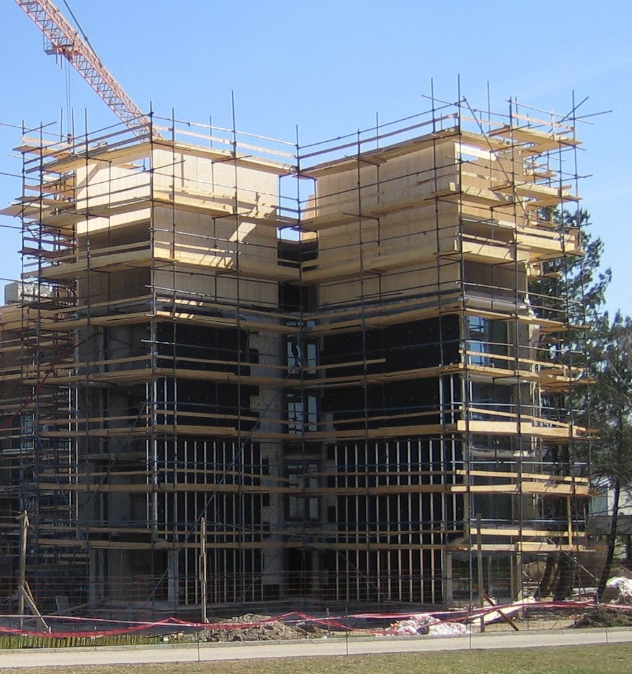 Construction à ossature bois avec du CLT, deux nouveaux étages installés sur quatre anciens étages en maçonnerie