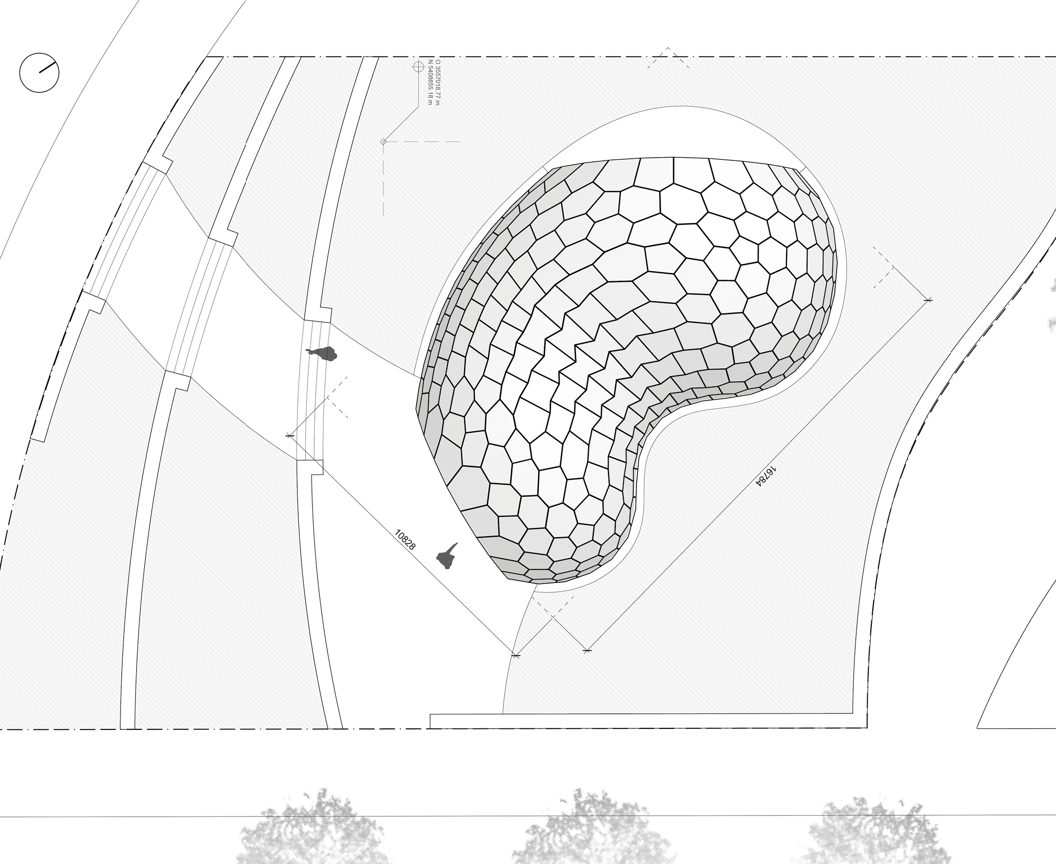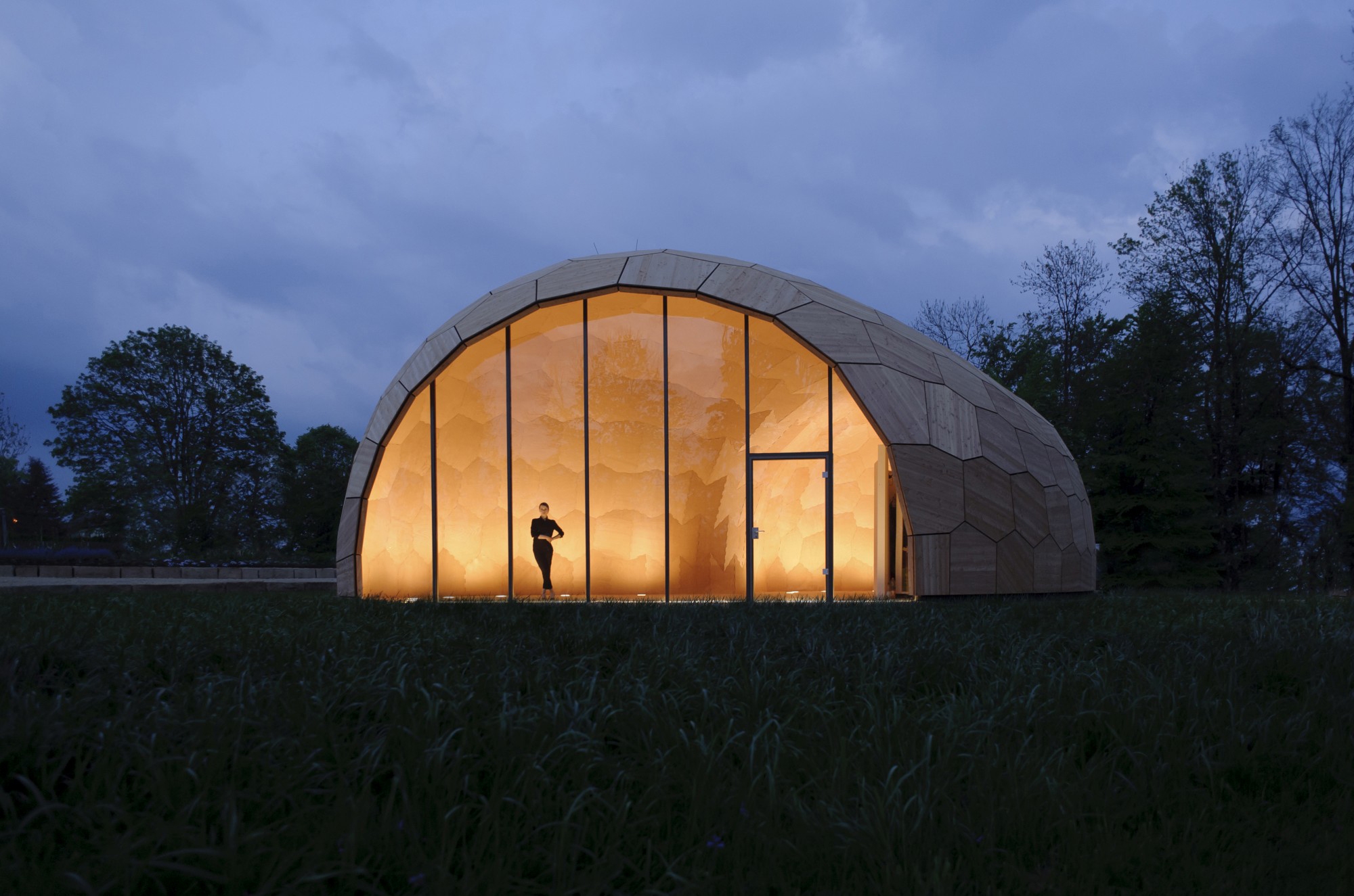 Oblikovanje: Paviljon je služil kot razstavni prostor v okviru razstave Landesgartenschau 2014 v mestu Schwäbisch Gmünd, ki ima približno 1,5 milijona obiskovalcev. Od tedaj se uporablja kot "zelena učilnica". Paviljon je zasnovan po vzoru oblike morskega ježka, ki s specifično razporeditvijo plošč sestavlja še posebej stabilno in učinkovito konstrukcijo.