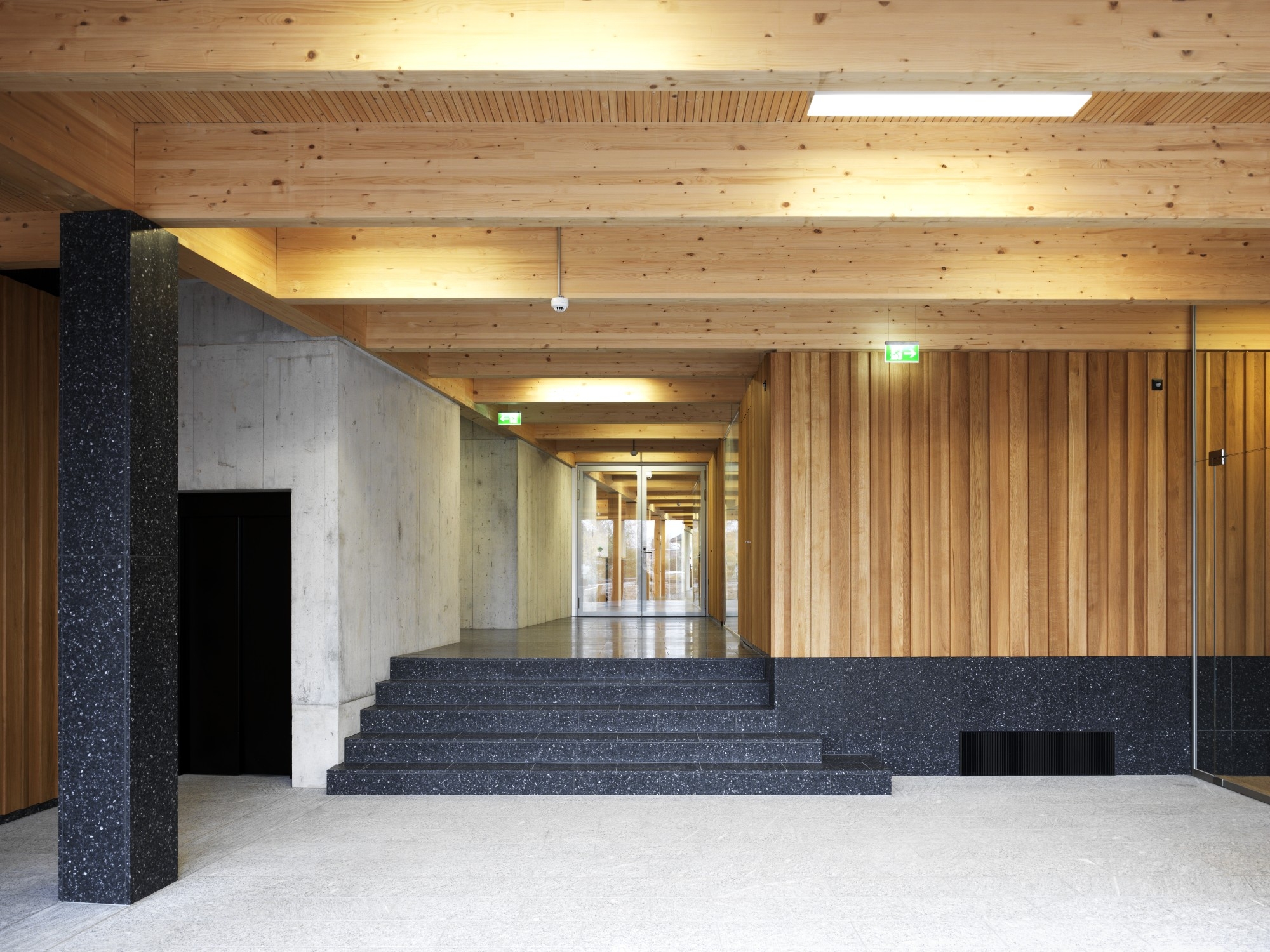 83% (217 m³) lesa za konstrukcijo izvira iz Švice (CH) in ima Lignum certifikat „Herkunftszeichen Schweizer Holz“